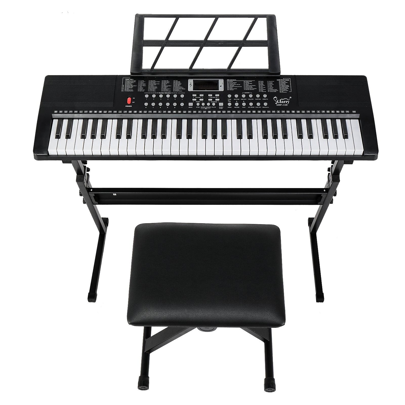 The Glarry GEP-110 61 Key Keyboard offers 200 tones, 200 rhythms, 60 demo songs, and an LED screen featuring three teaching modes (Single-finger, Follow, Concert), making it ideal for beginners. It includes built-in stereo speakers for clear sound, and comes with a free headphone so you can practice without disturbing