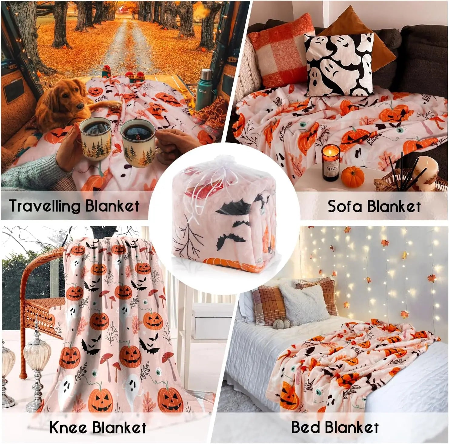 Celebrate the season with this cozy fleece throw featuring pink pumpkins, ghosts, and mushrooms—perfect for Halloween and fall décor. This charming farmhouse-style blanket also makes a thoughtful Thanksgiving gift for women who appreciate festive comfort.